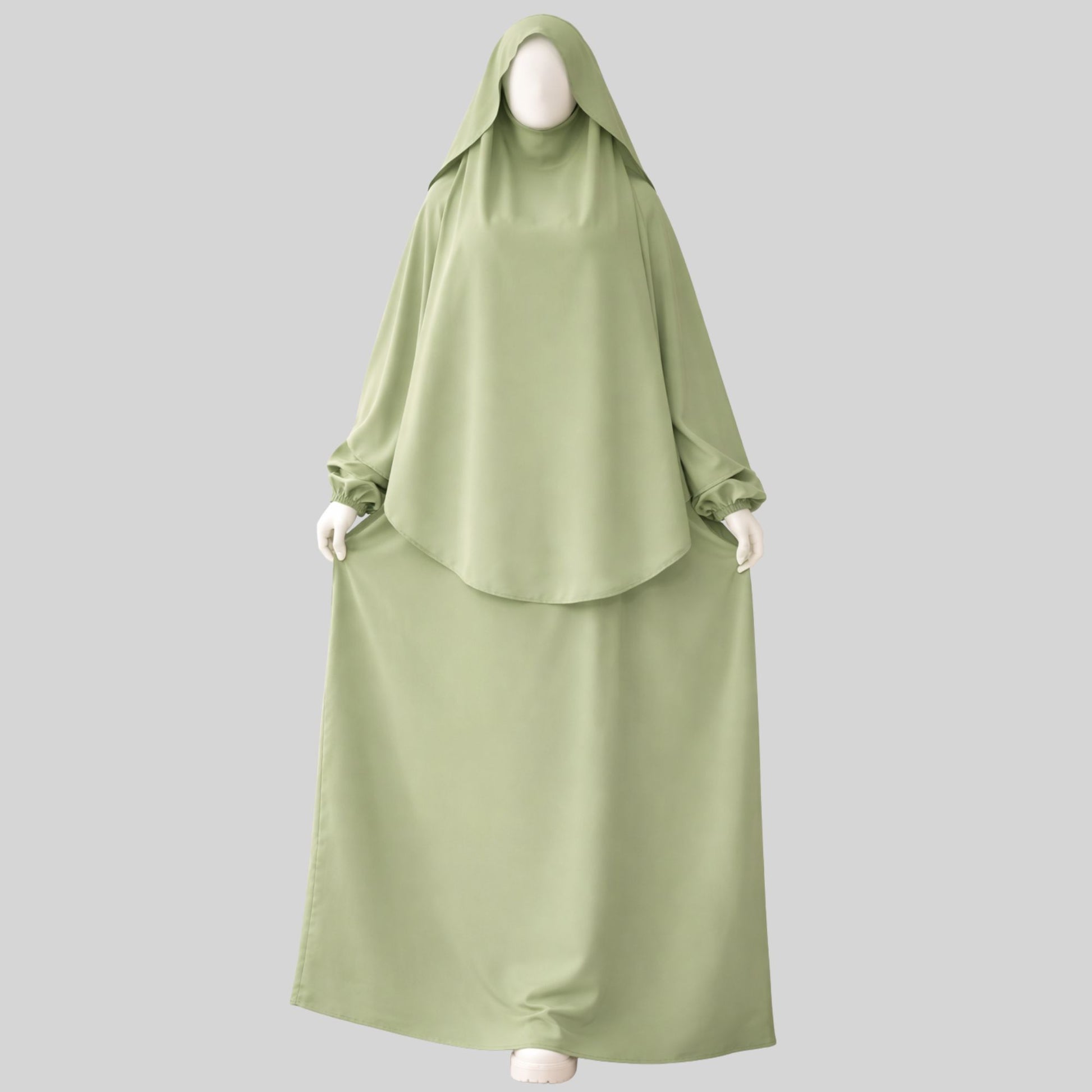 Ensemble de prière luxueux en crêpe Rosa doux, caractérisé par une grande fluidité et une légèreté qui vous offrent un confort absolu et une élégance raffinée. Conception pratique en deux pièces (khimar + abaya) avec une coupe ample couvrant entièrement le corps et permettant une liberté de mouvement optimale, idéal pour la prière à la maison, à la mosquée pendant les prières de Tarawih, ainsi que pour un usage quotidien.
